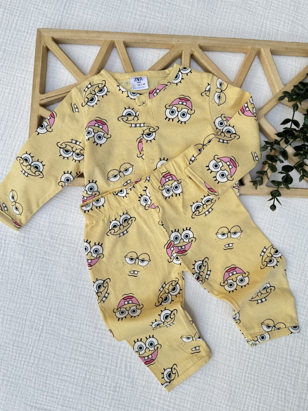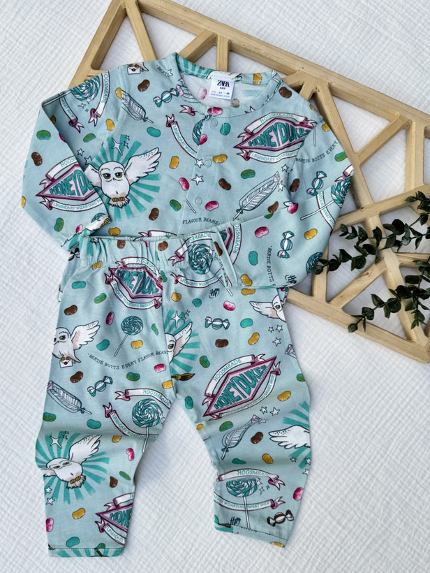 سایز:9_12 ماه: قد بلوز: 34 پهنا: 27 قد آستین: 26 قد شلوار:45 کمر: 22