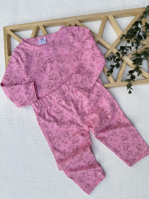 سایز:6_9 ماه: قد بلوز: 32 پهنا:26_27 قد آستین: 24 قد شلوار:41 کمر:21