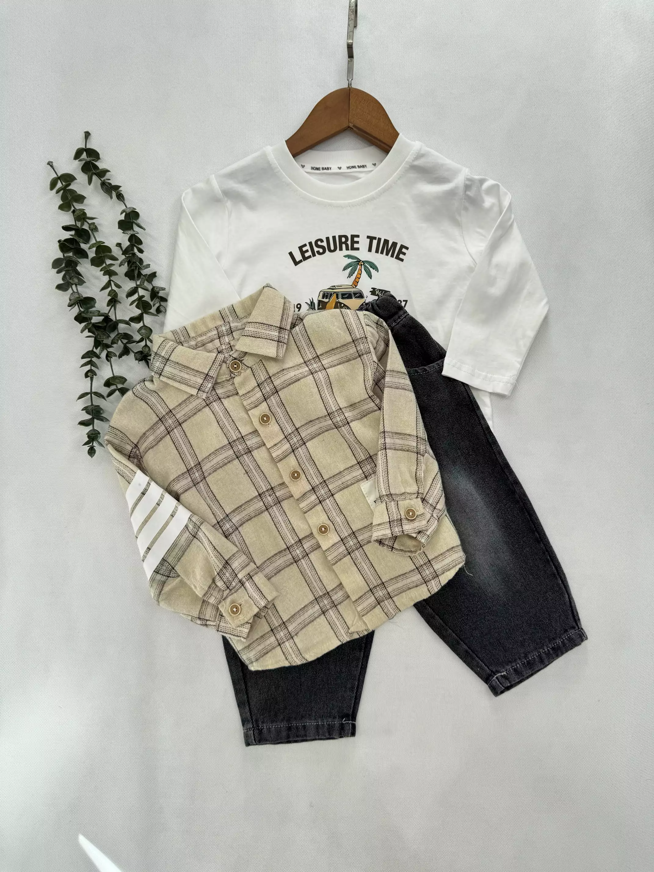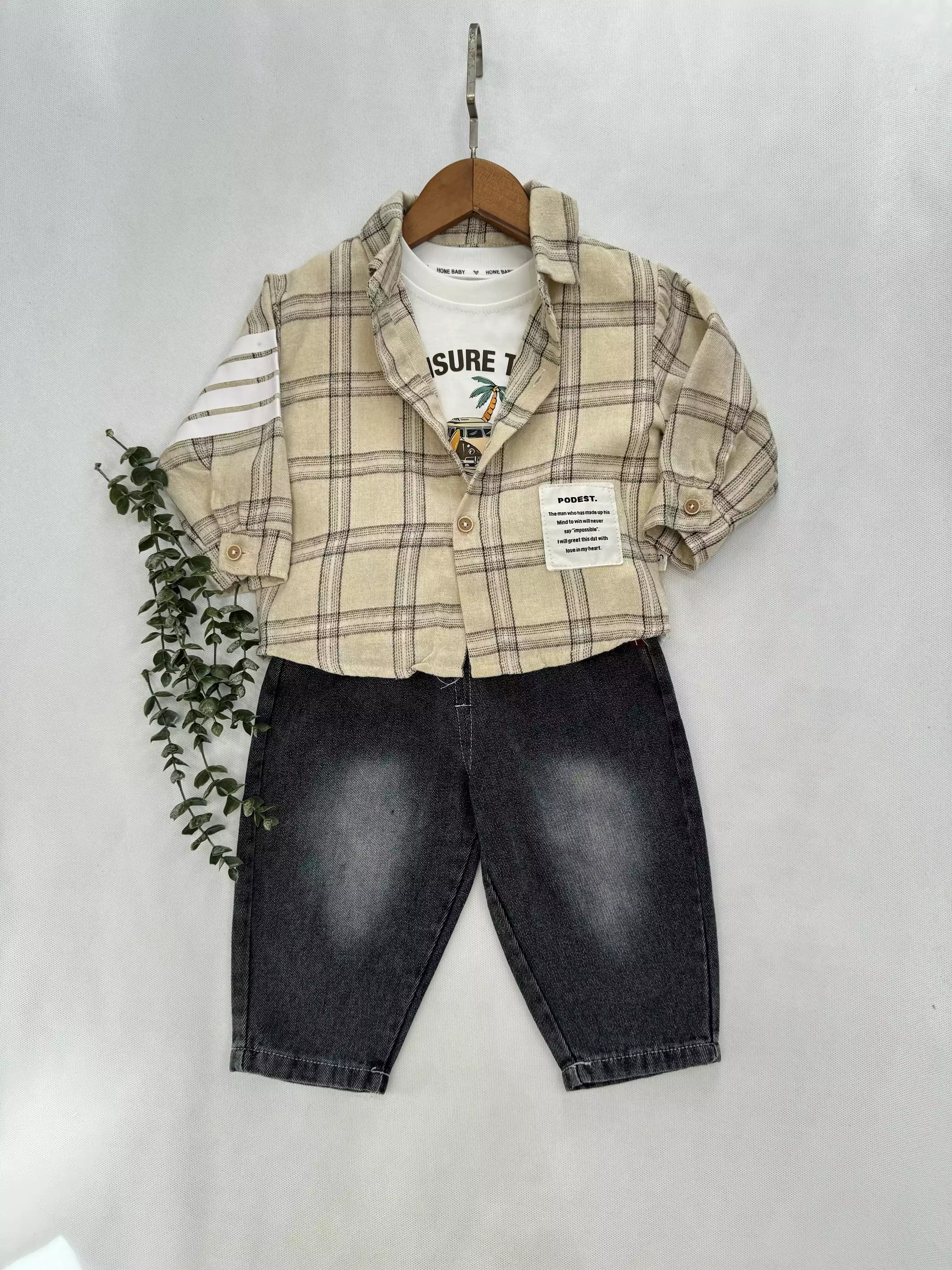 ست سه تیکه مجلسی آفرود پیراهن بلوز شلوار جین پسرانه کیفیت عالی وارداتی
