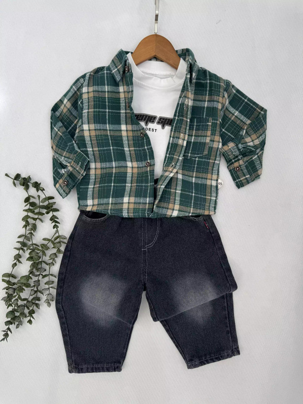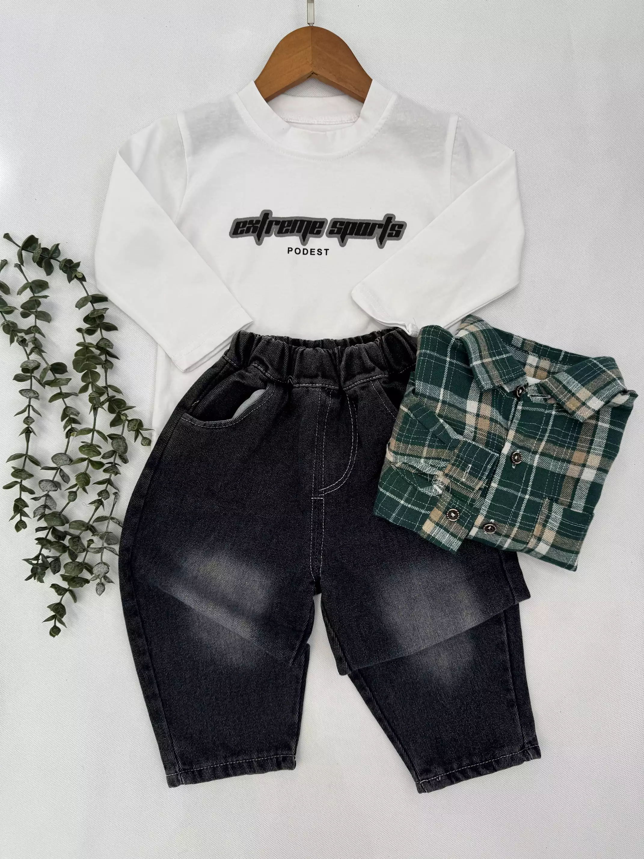 ست سه تیکه مجلسی آفرود پیراهن بلوز شلوار جین پسرانه کیفیت عالی وارداتی
