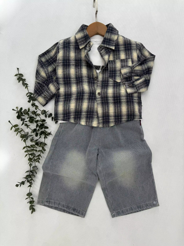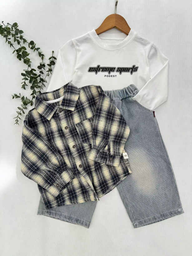 ست سه تیکه مجلسی آفرود پیراهن بلوز شلوار جین پسرانه کیفیت عالی وارداتی