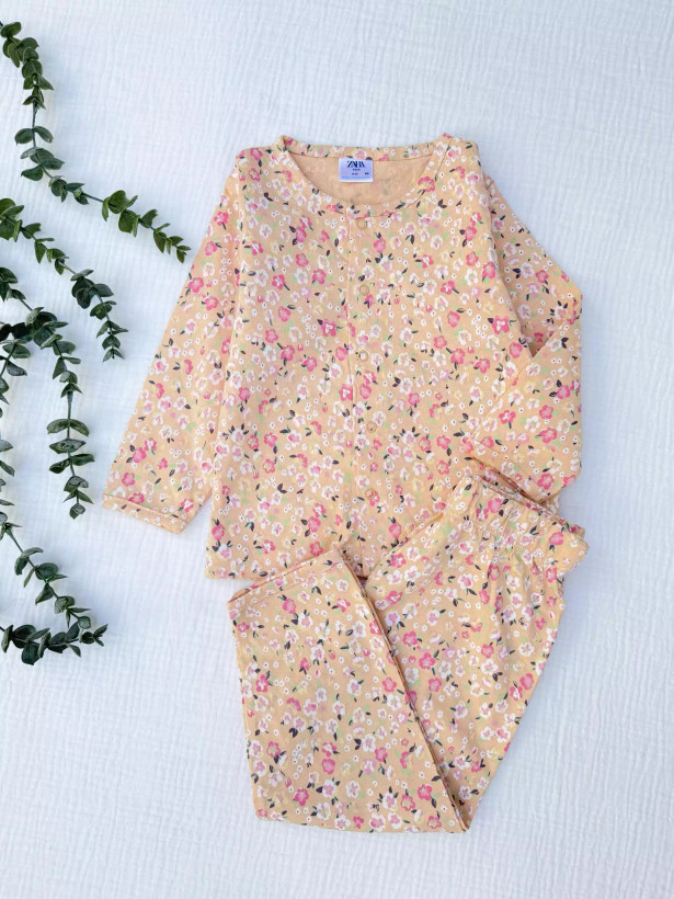 ست بلوز و شلوار جلو دکمه دار🤩 برند وارداتی زارا مدل گل نارنج
