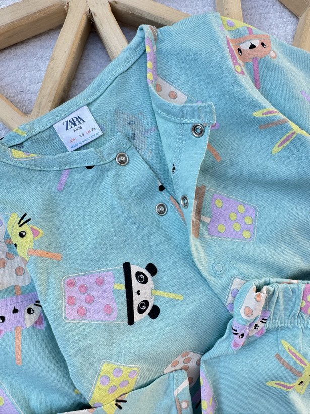 سایز:6_9 ماه: قد بلوز: 32 پهنا:26_27 قد آستین: 24 قد شلوار:41 کمر:21