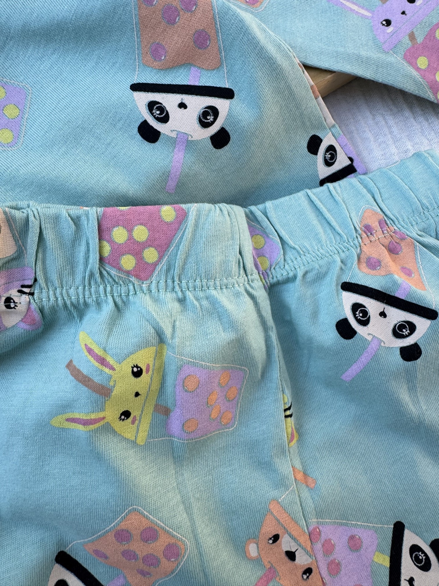 سایز:18_24ماه: قد بلوز: 40 پهنا: 30 قد آستین: 28 قد شلوار: 54 کمر:25
