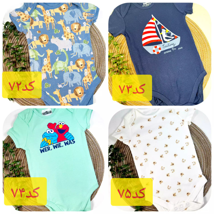 ۲۰ طرح بادی آستین کوتاه 18 تا 24 ماه پسرانه دخترانه نخ پنبه وارداتی و بدون حساسیت