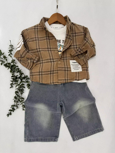 ست سه تیکه مجلسی آفرود پیراهن بلوز شلوار جین پسرانه کیفیت عالی وارداتی