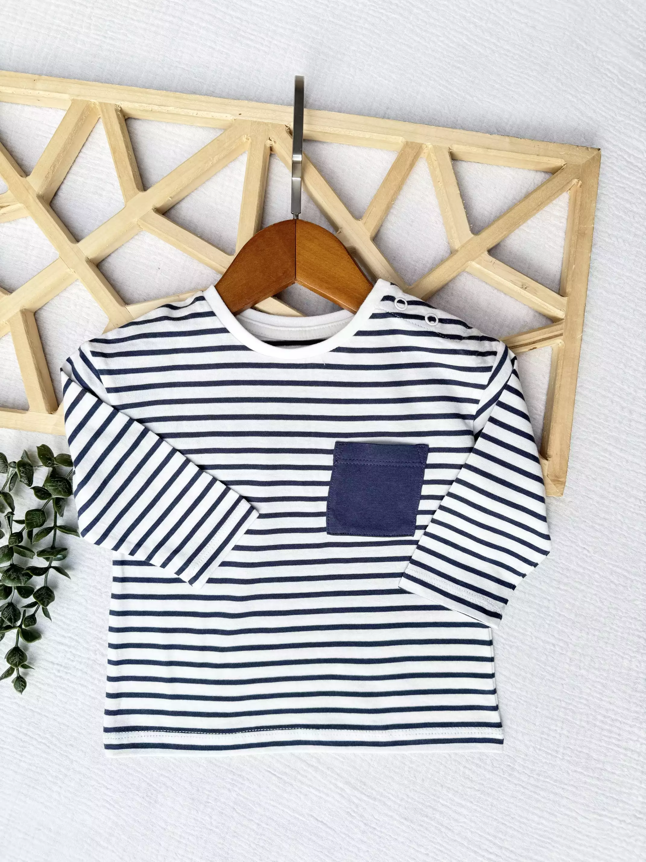 ناموجودبلوز دورس دونخ سرشونه دکمه دار طرح راه راه آبی با جیب کیفیت عالی وارداتی