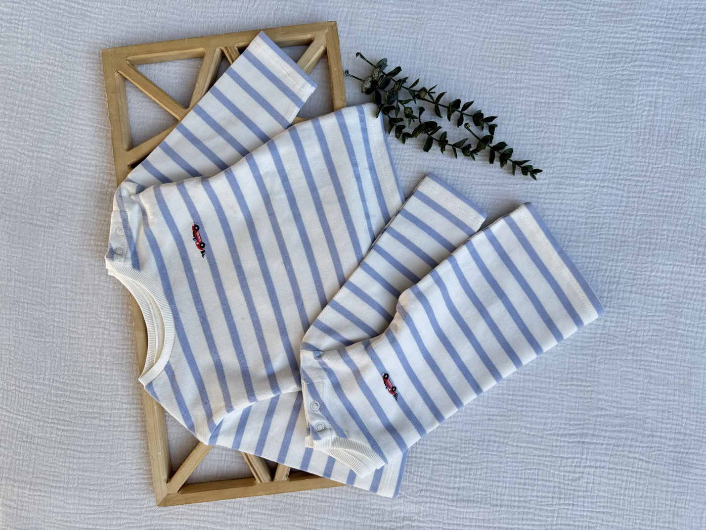 بلوز دورس دونخ سرشونه دکمه دار طرح راه راه آبی کیفیت عالی وارداتی